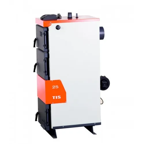 Котел твердотопливный ТИС Плюс 25 – это напольный низкотемпературный теплогенератор, способный отопить частный дом, коттедж, торговые, складские, производственные площади размером до 300 м2.